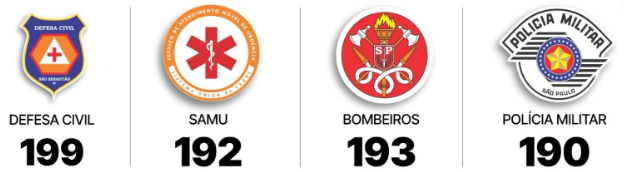 | Corpo de Bombeiros | 193 | Resgates, incêndios e quedas de árvores com vítimas. |